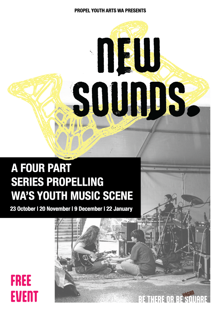 New Sounds is presented by Propel Youth Arts WA, branding and collateral designed by feebee.studios.